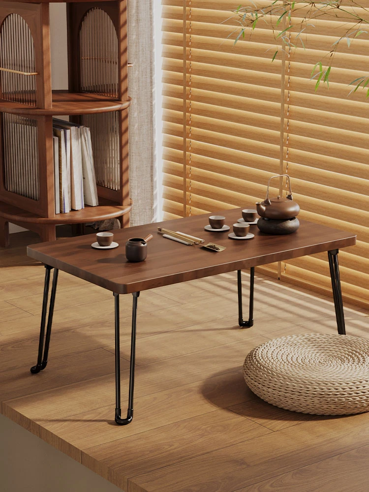 Elegant Folding Tea Table in New Chinese Style - Vintage-Inspired Small Desk for Bay Windows, Bedrooms, and Low Seating Areas. Perfect for Creative Balconies and Zen Spaces.