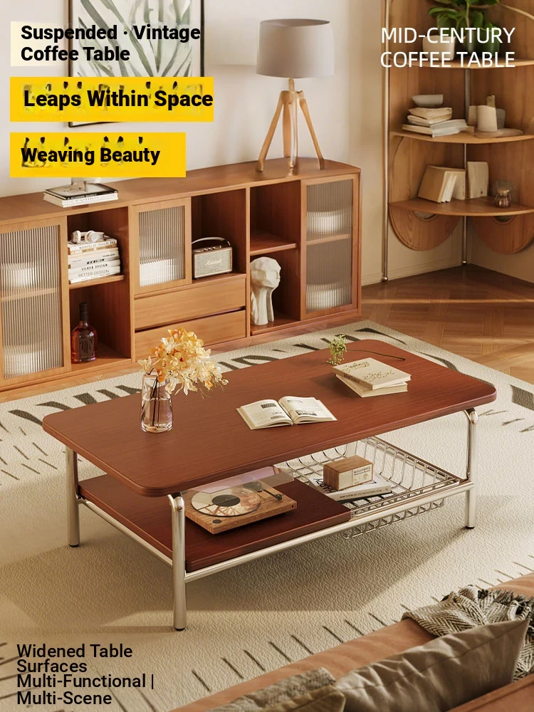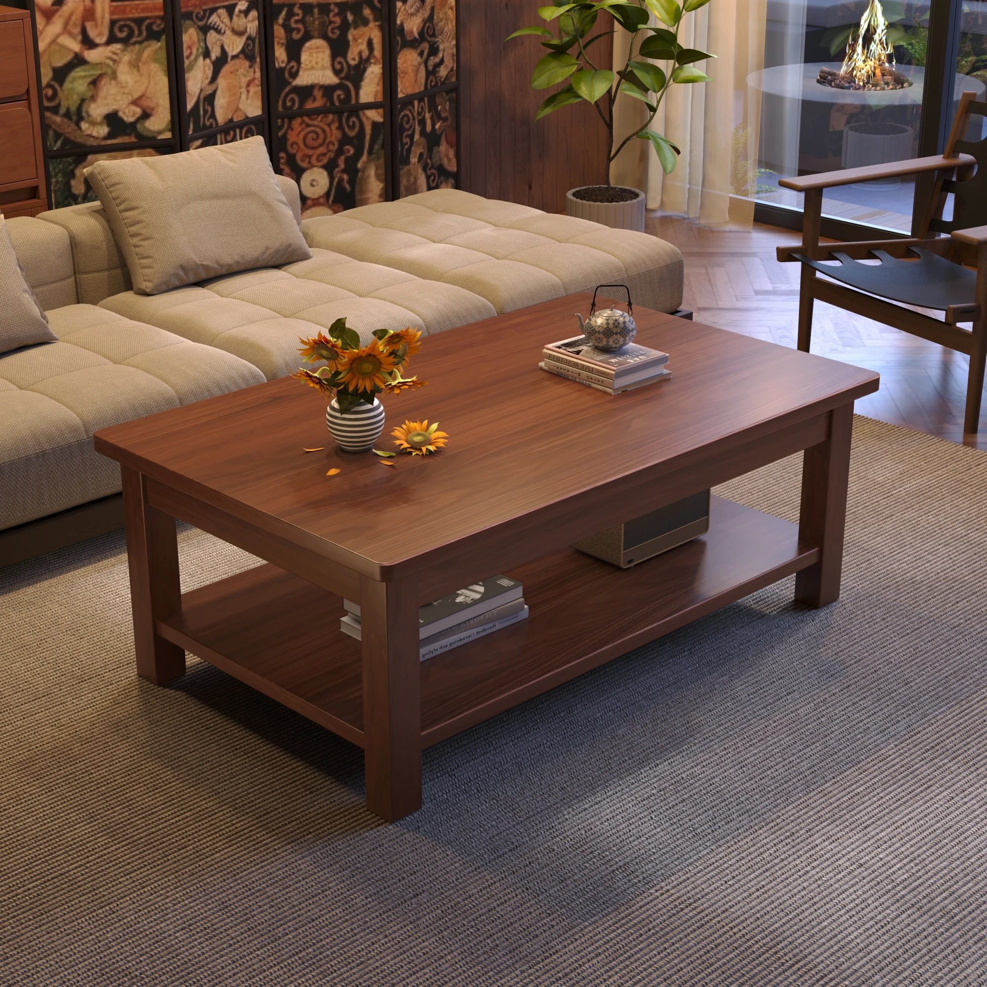 2025 New Vintage-Style Solid Wood Coffee Table for Small Living Spaces - Dual-Layer Tea Table and Dining Table Combo, Perfect for Modern Homes