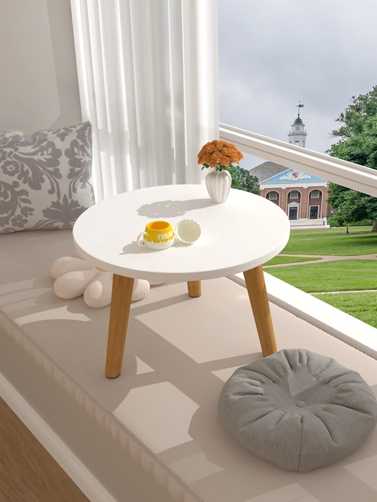 Modern Minimalist Round Coffee Table for Bay Window - Compact Mini Low Table with Solid Wood Legs for Bedroom, Tatami Style, Perfect for Cozy Spaces and Ins Inspired Decor