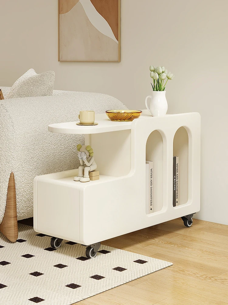 Nordic Minimalist Cream-Colored Mobile Side Table - Perfect for Small Living Spaces, Trendy Coffee Table for Sofas and Cozy Home Use