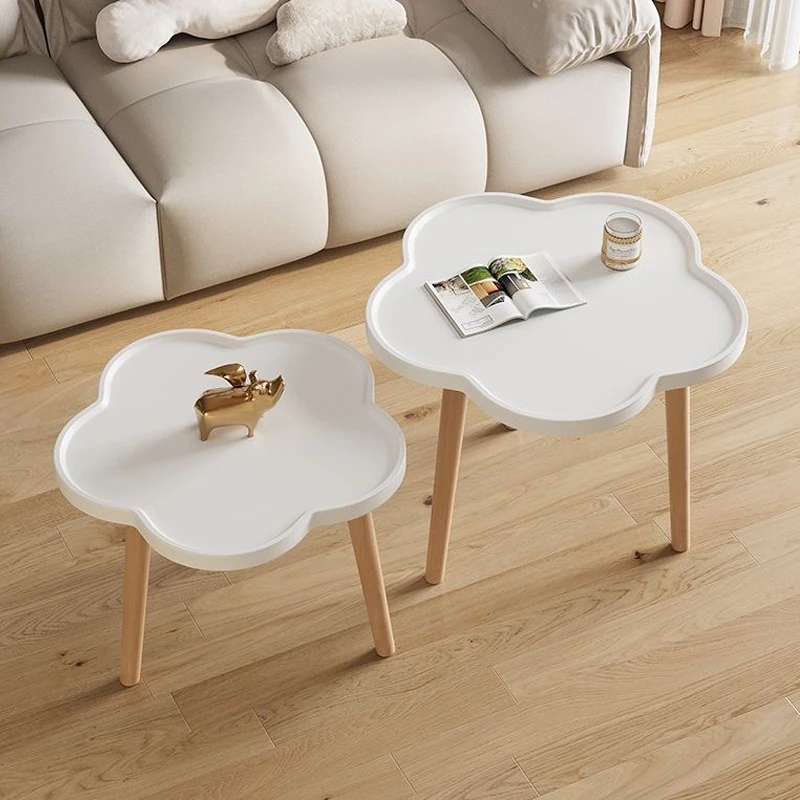 Creative Petal-Edged Cream Cloud Small Coffee Table - Perfect for Living Room and Bedroom, Versatile Mini Table for Tea and Storage Solutions