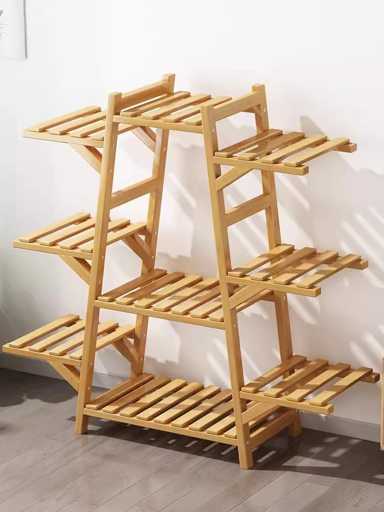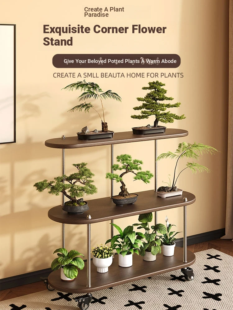 New Portable Multi-Tiered Wooden Plant Stand for Living Room and Balcony – Stylish Floor-Standing Storage Rack for Indoor Use, Perfect for Displaying Your Favorite Pots!
