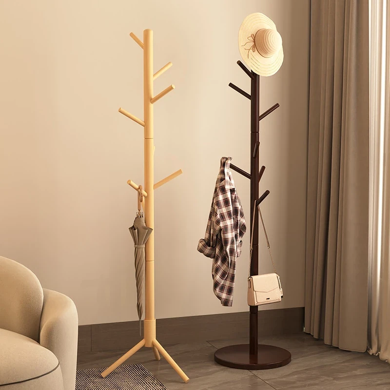 Stylish Solid Wood Clothes Rack for Dormitories - Elegant Floor Standing Coat Hanger for Bedroom & Home Use - Minimalist Design, Trendy and Functional Garment Stand