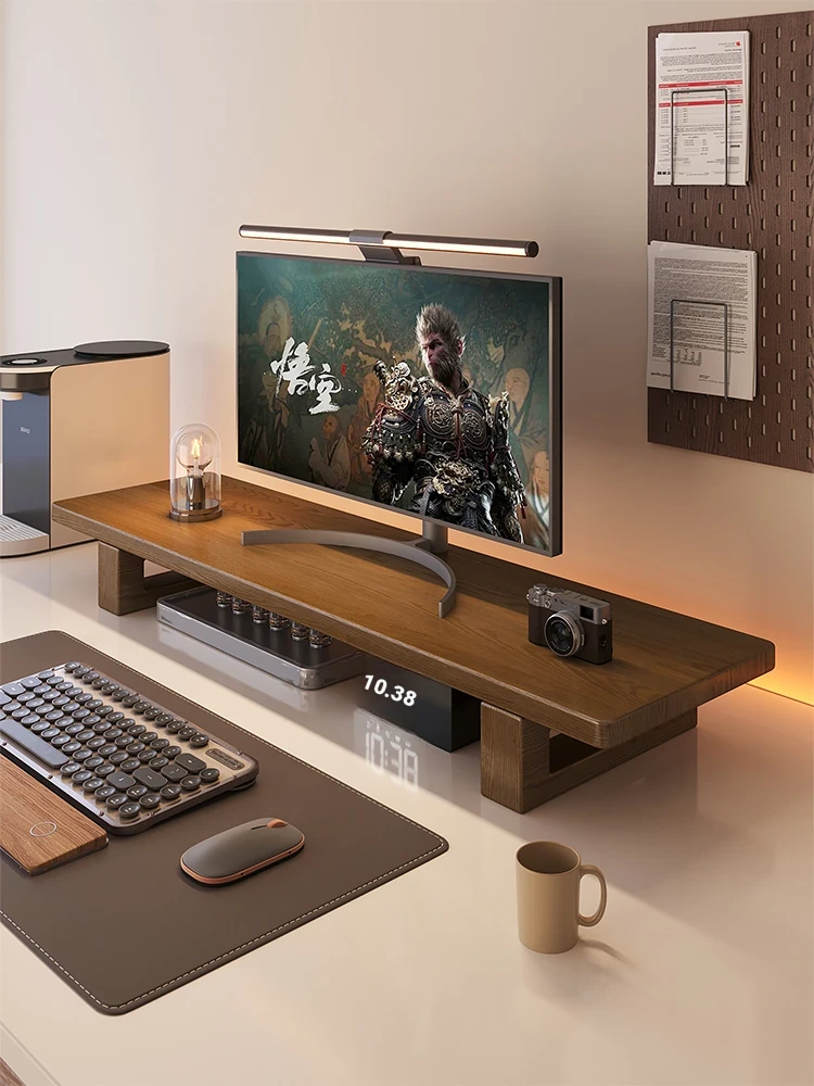 Walnut Wood Desktop Monitor Stand - Elevate Your Workspace with This Stylish Organizer Rack for Office Desks and Storage Solutions