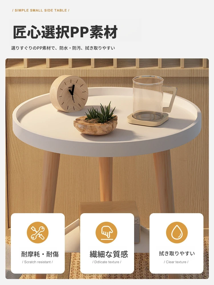 小型モダンコーヒーテーブル|移動可能なサイドテーブル|ソファやベッドサイドにも最適|シンプルでおしゃれなデザイン|リビングやバルコニーにぴったりな小型ラウンドテーブル