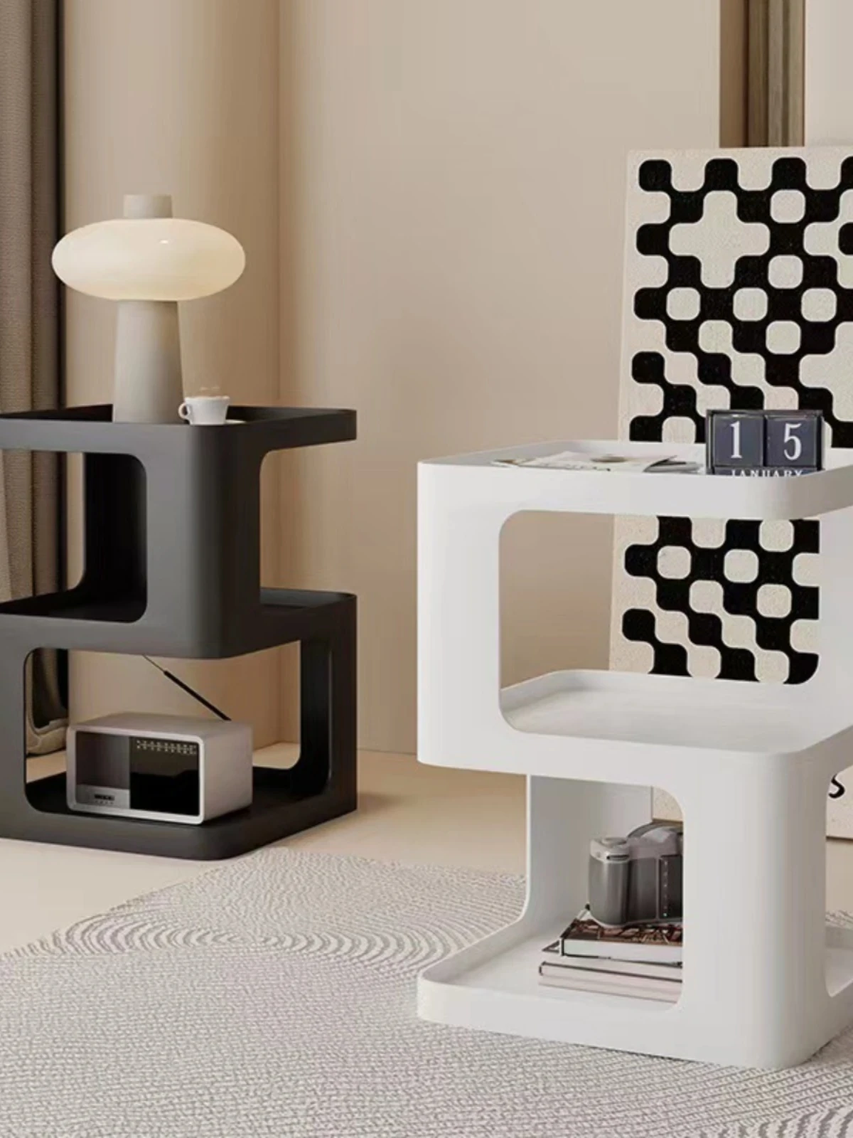 軽やかさと贅沢さを兼ね備えたミニマルデザインのサイドテーブル - 小型リビングに最適なティーテーブル、寝室のナイトテーブル、シンプルでモダンな収納棚としても使える!