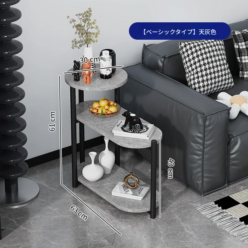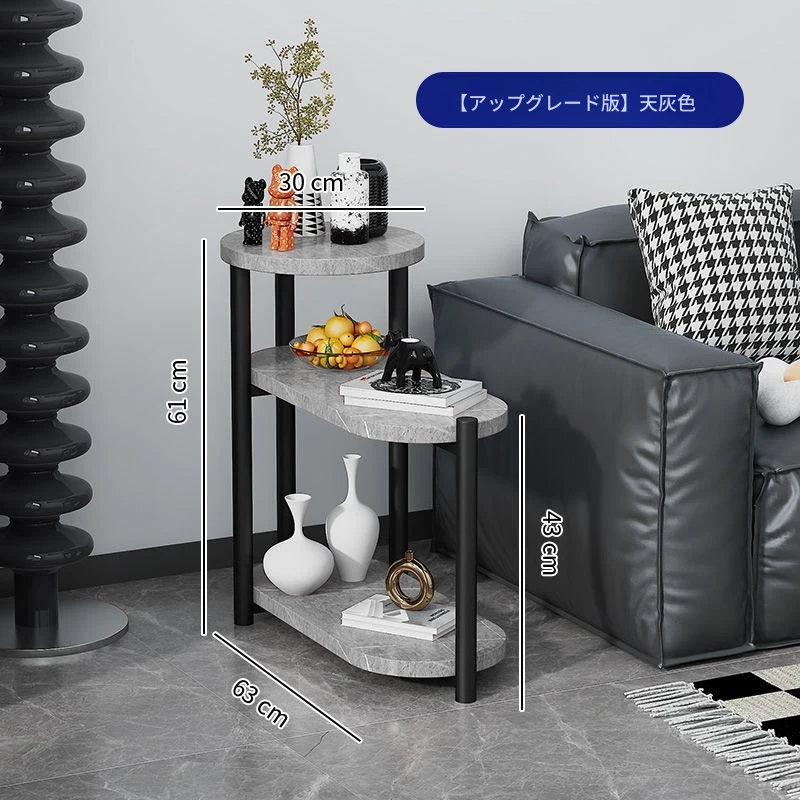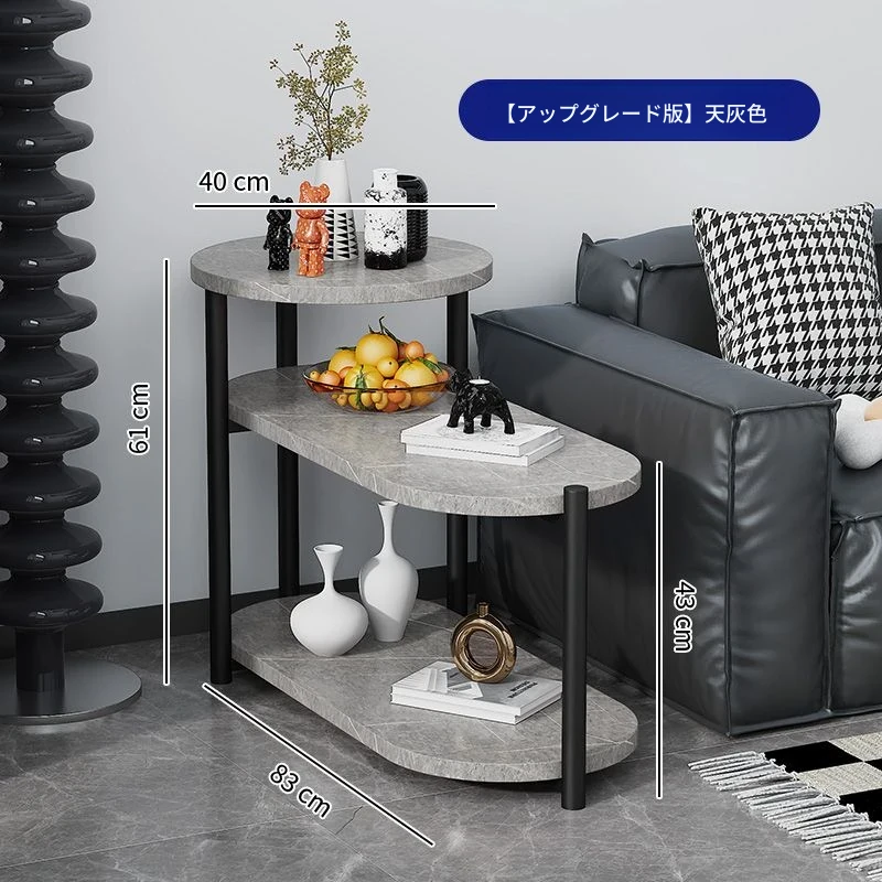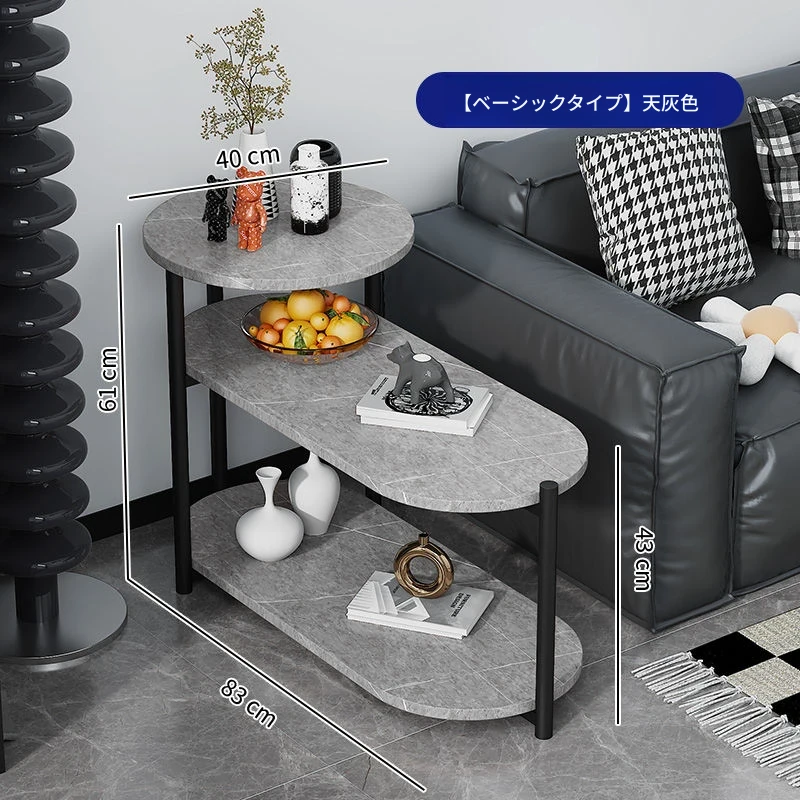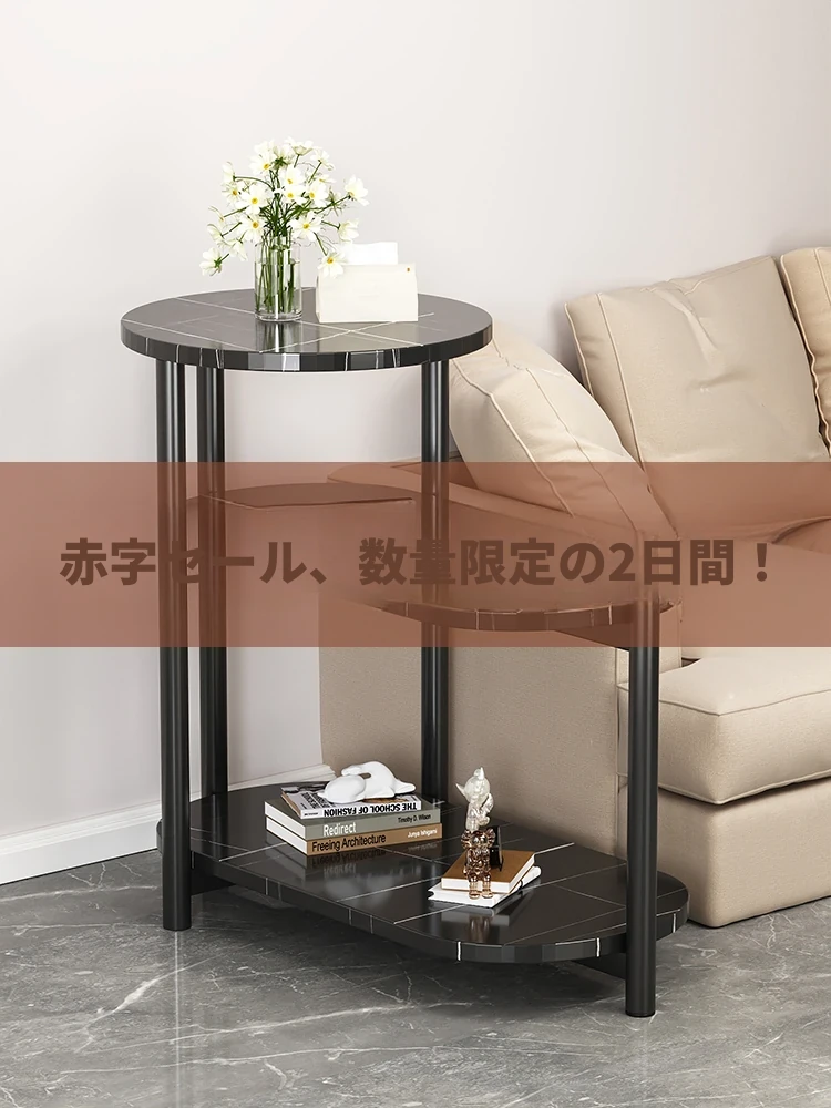【二層ラウンドエッジテーブル】ブラック大理石模様-ブラックフレーム
