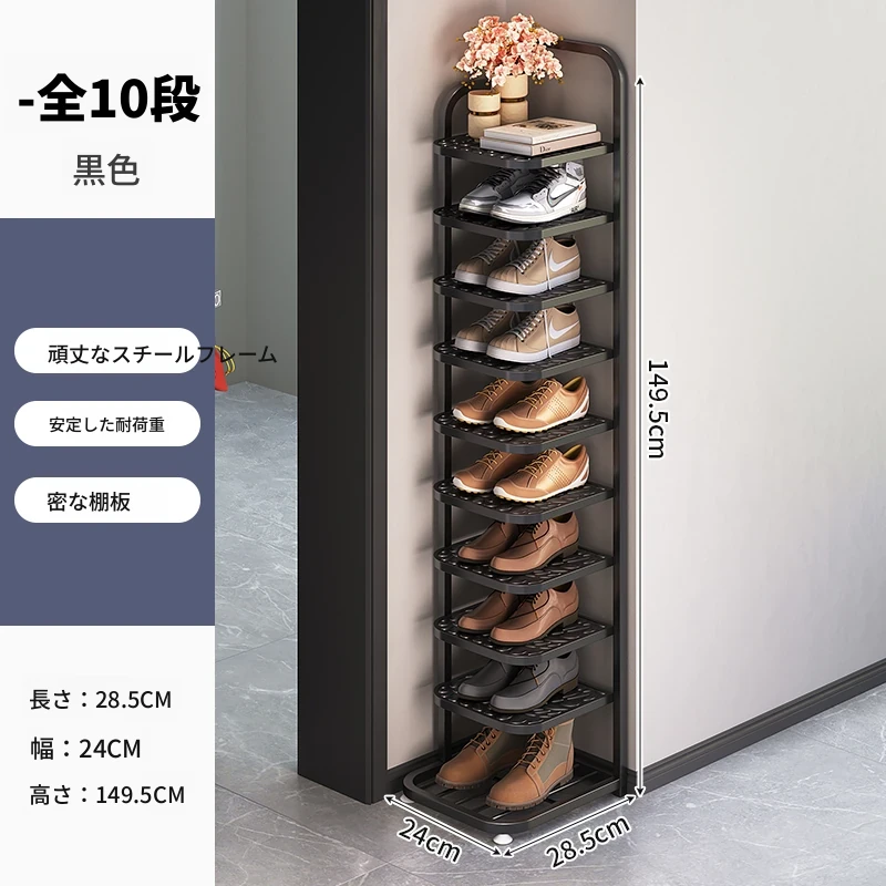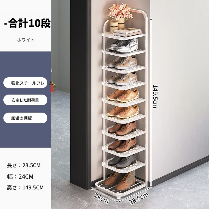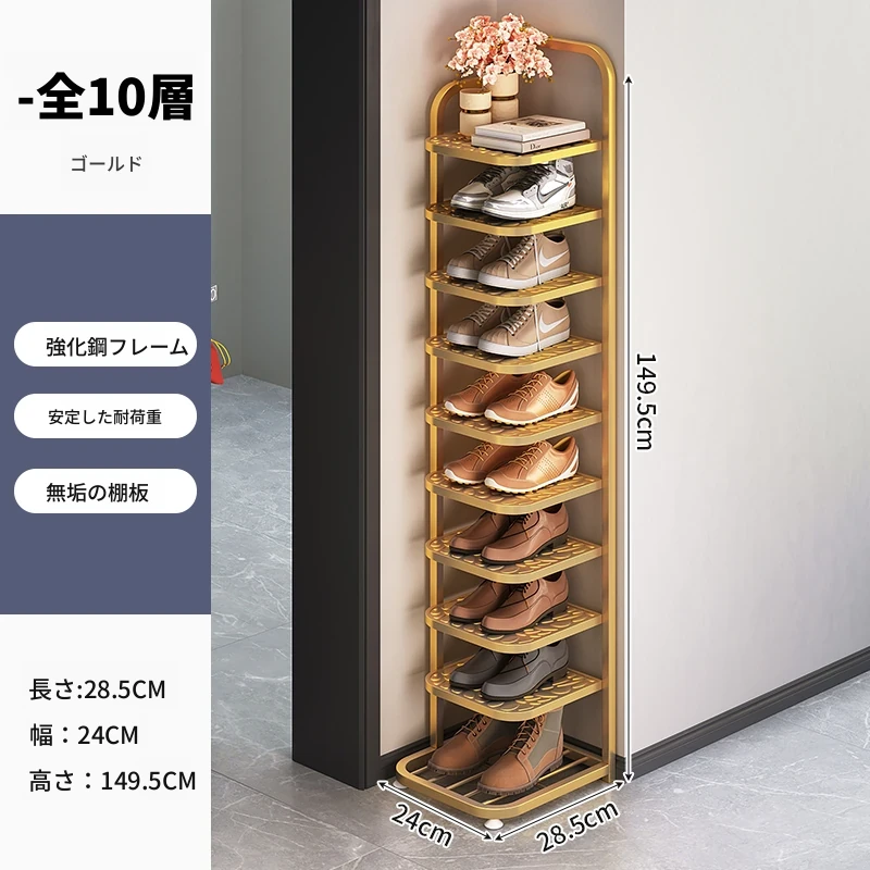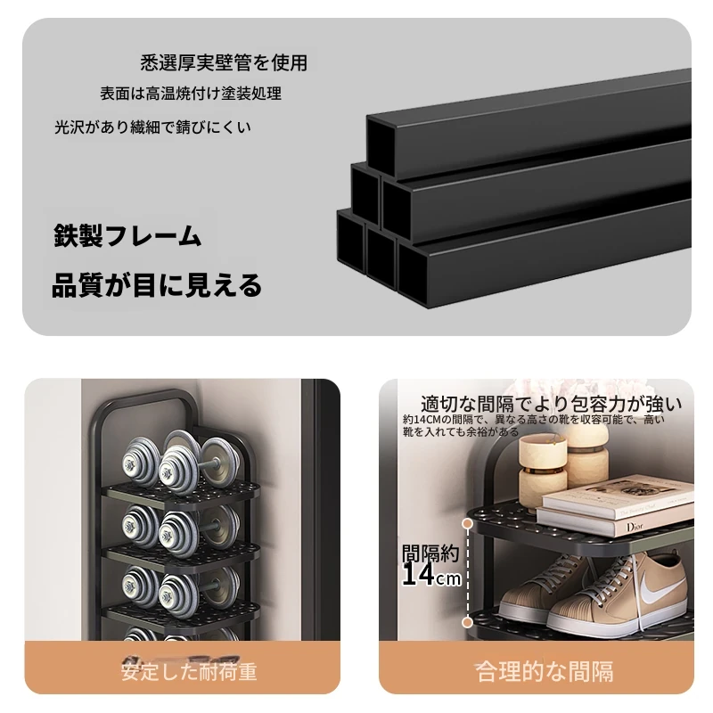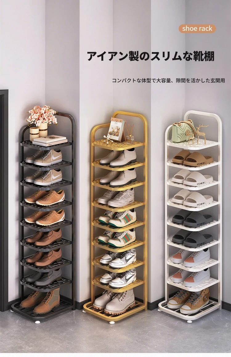 省スペース!多層折りたたみ式シューラック - 家庭用玄関収納に最適なスリムな靴棚!室内での靴整理を簡単に実現。収納力抜群で、狭い場所でも大活躍!