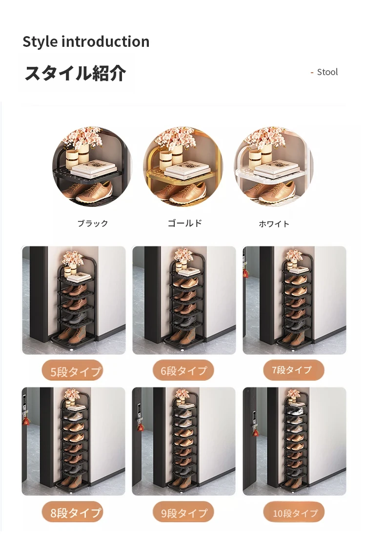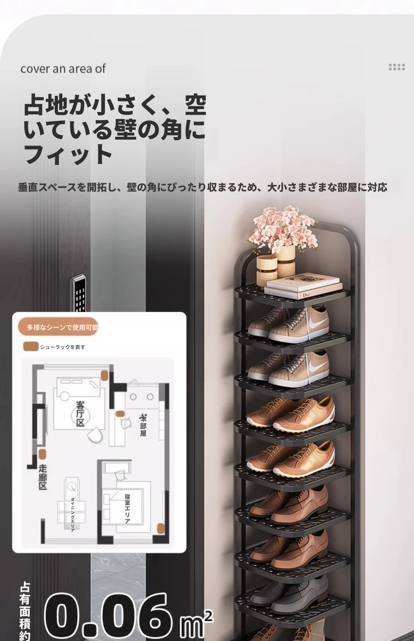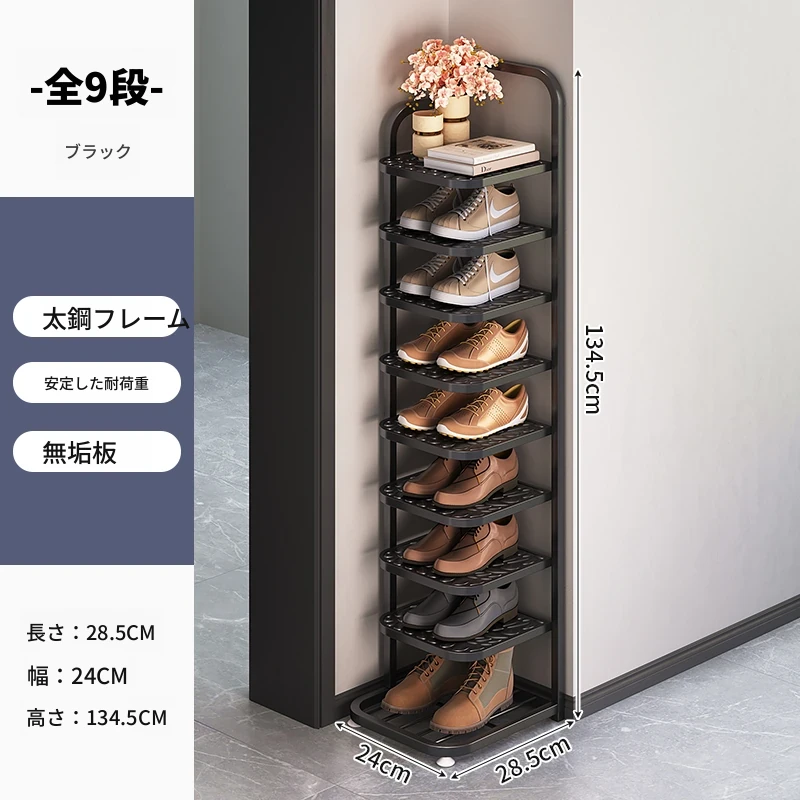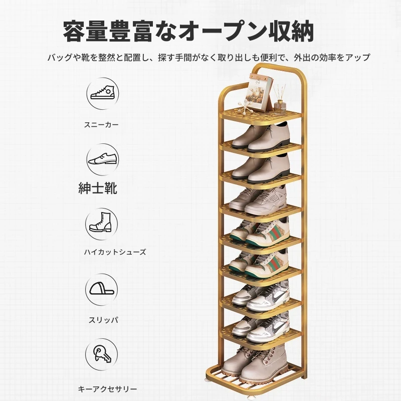 省スペース!多層折りたたみ式シューラック - 家庭用玄関収納に最適なスリムな靴棚!室内での靴整理を簡単に実現。収納力抜群で、狭い場所でも大活躍!