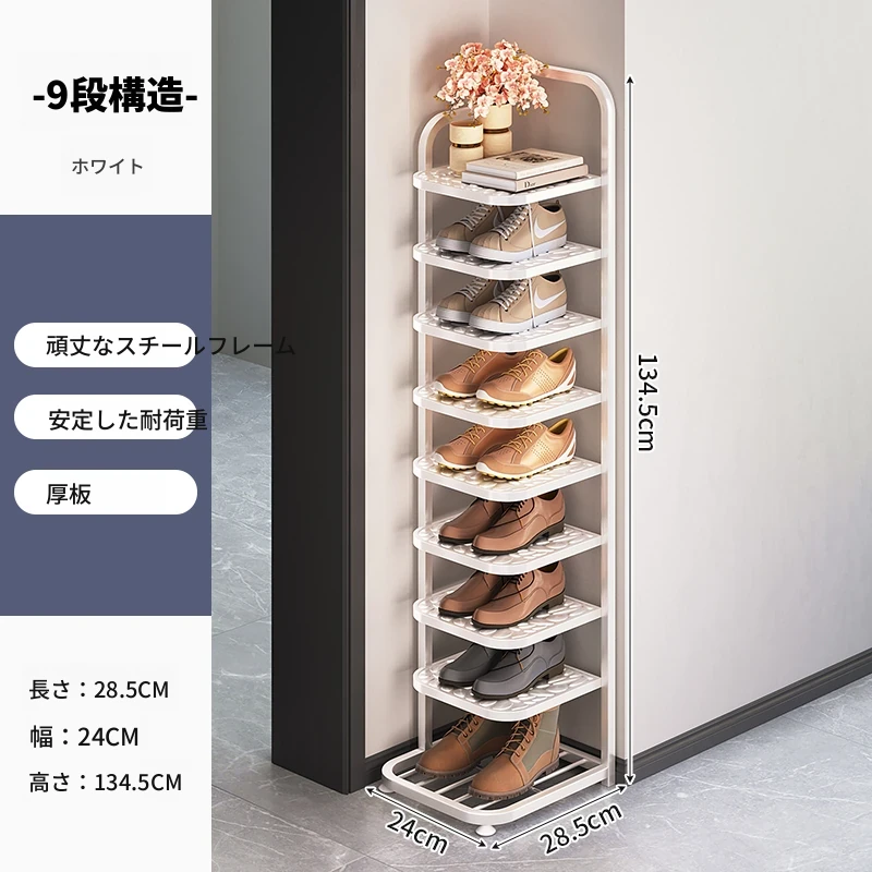 【折りたたみ⭐アップグレード強化スチールフレーム】ホワイト9段タイプ