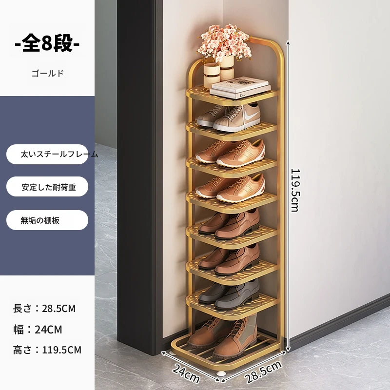 【折りたたみ⭐アップグレード強化スチールフレーム】ゴールド8段タイプ