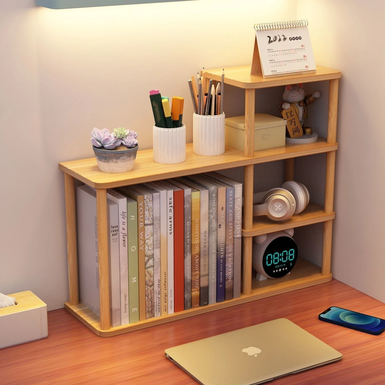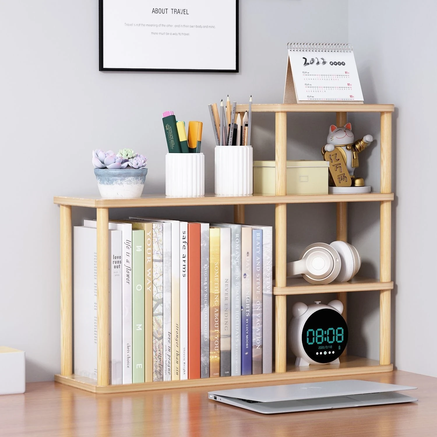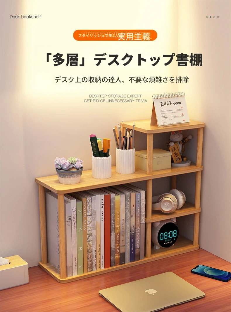 子供向け!多層デザインのシンプルなデスク上収納ラック - 学生のための可愛い小型書棚で、効率的に整理整頓!勉強や仕事がもっと快適に!