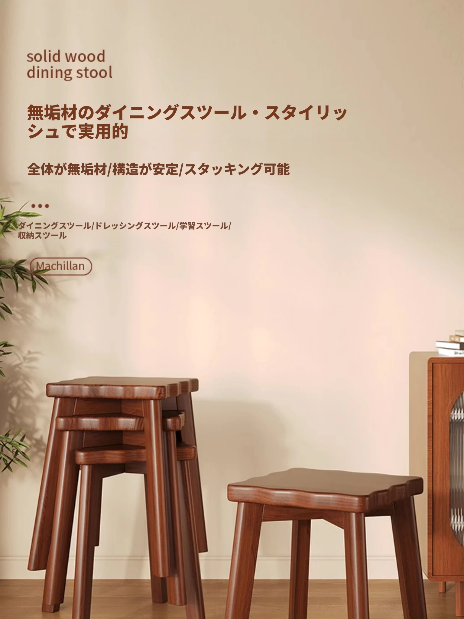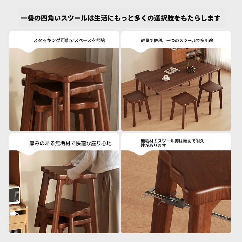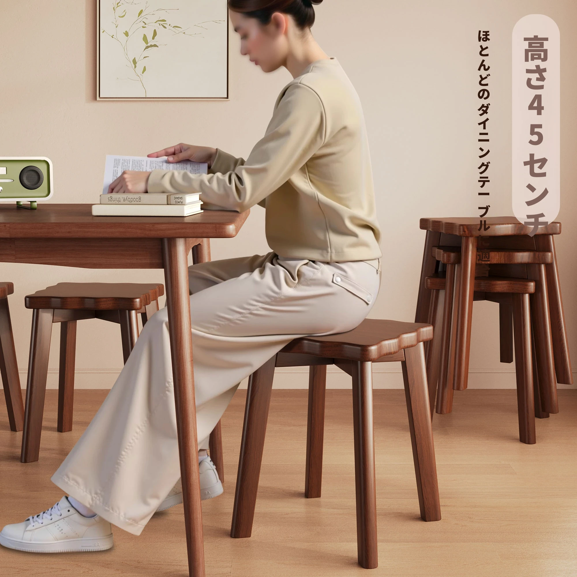新中式デザインの実木製スタッキングベンチ - 家庭用・食卓用に最適!引越し祝いにもぴったりなスタイリッシュなサブベンチ。リビングやゲスト用として便利に使えます!