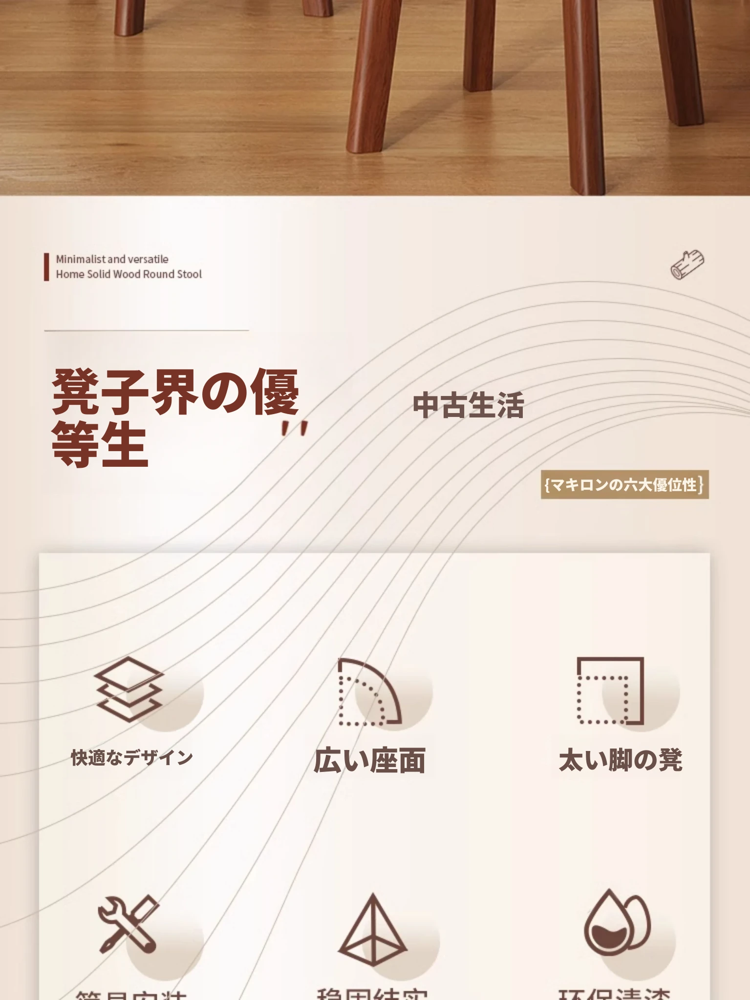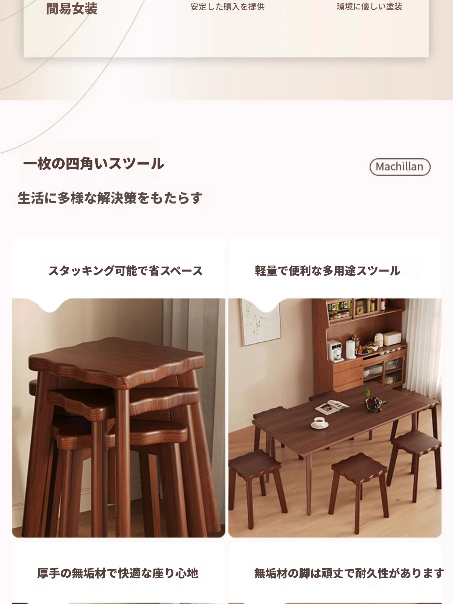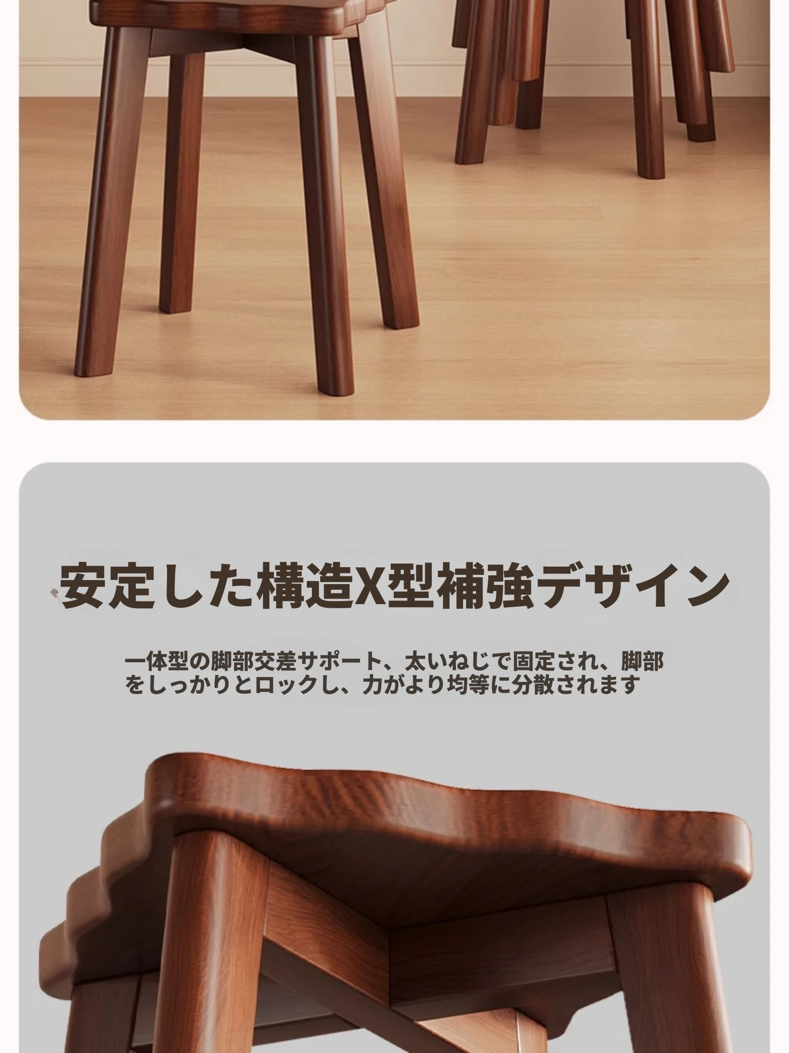 新中式デザインの実木製スタッキングベンチ - 家庭用・食卓用に最適!引越し祝いにもぴったりなスタイリッシュなサブベンチ。リビングやゲスト用として便利に使えます!