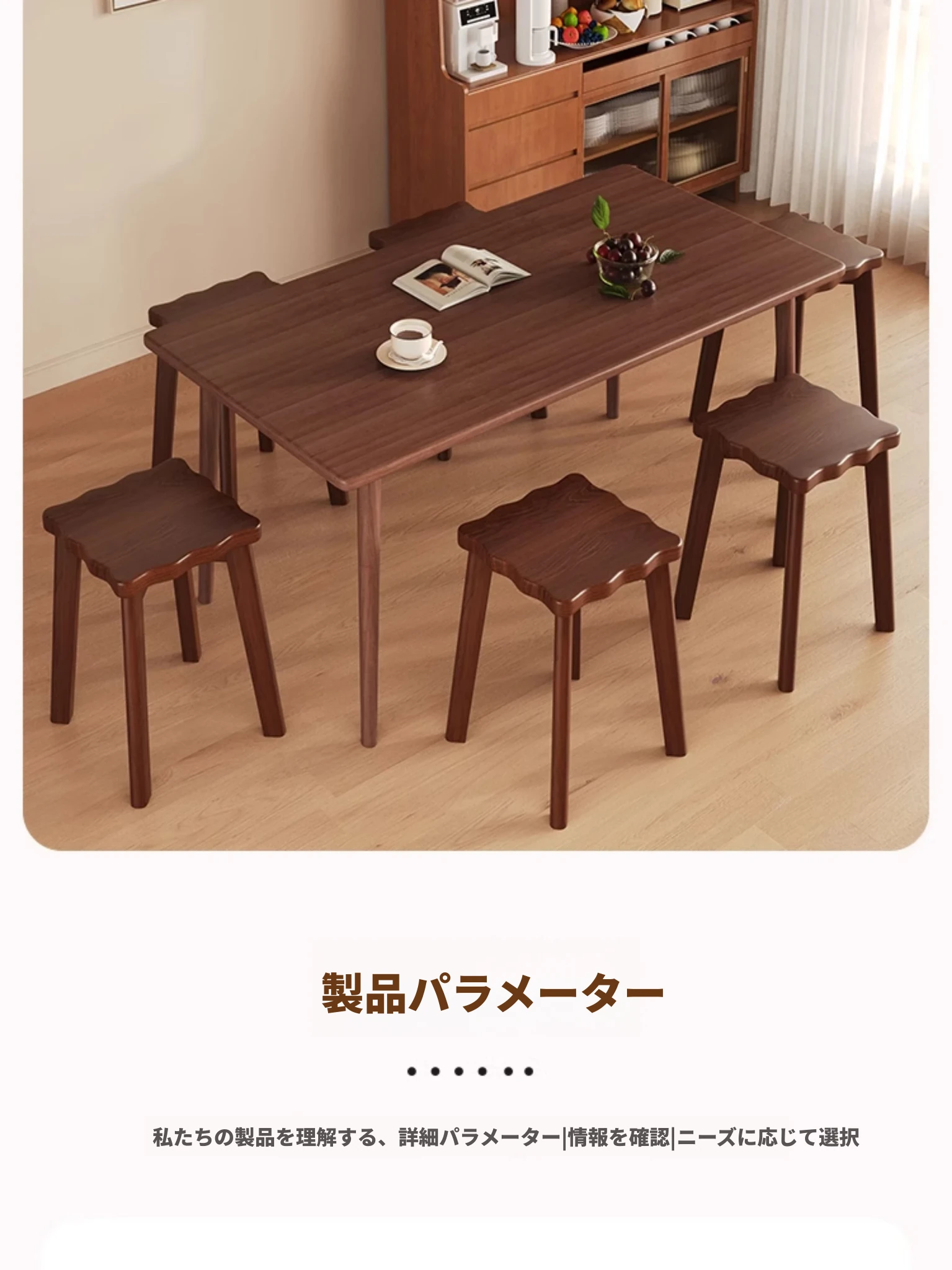 【厚手の無垢ラバーウッド】6脚セット-ウォールナットカラーの無垢クッキー椅子