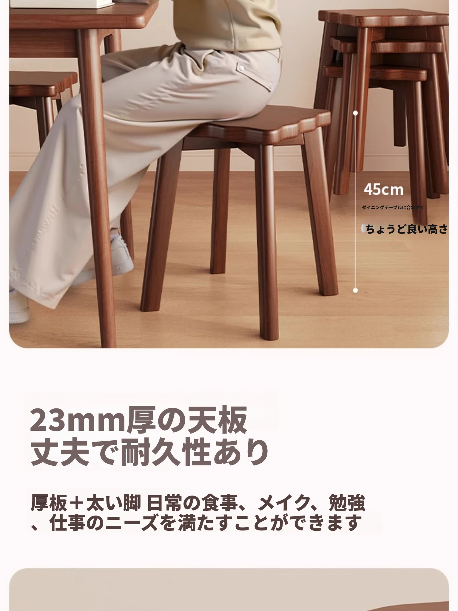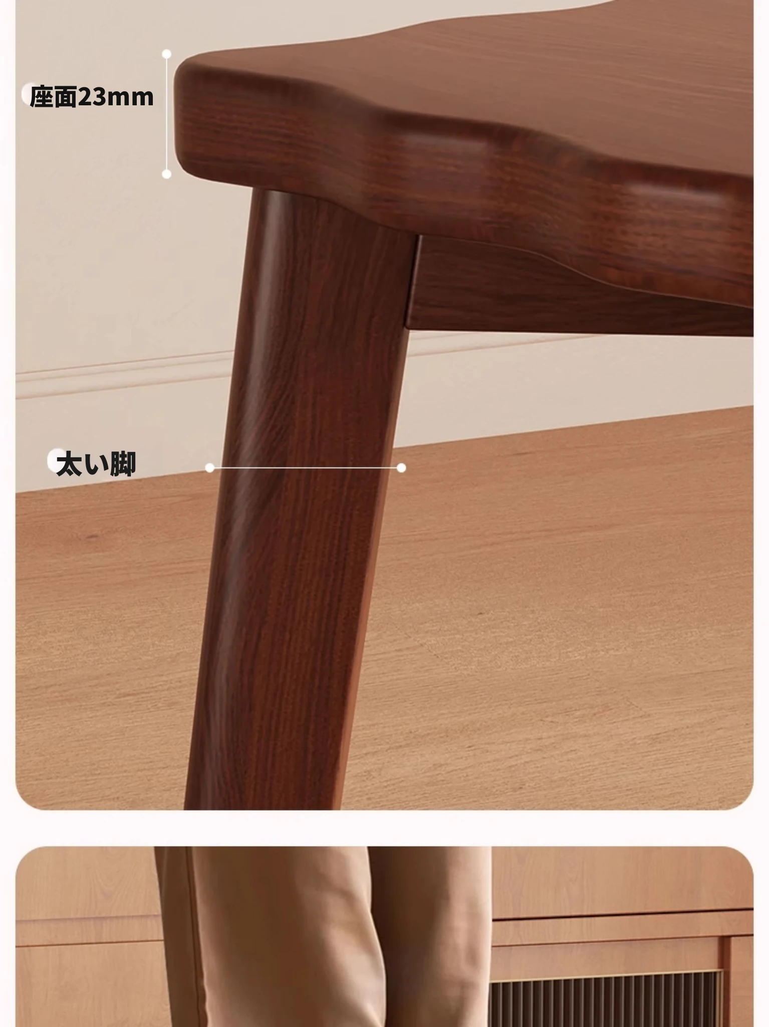 【厚手の無垢ラバーウッド】ウォールナットカラーの無垢クッキー椅子