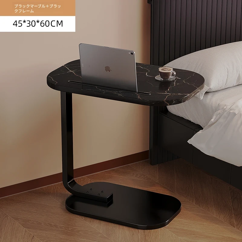 【C型エッジテーブル】45*30*60【白大理石-黒フレーム】