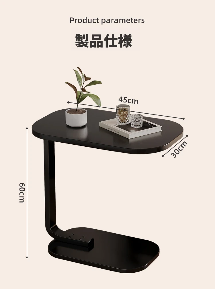【C型エッジテーブル】45*30*60【純黒-黒フレーム】
